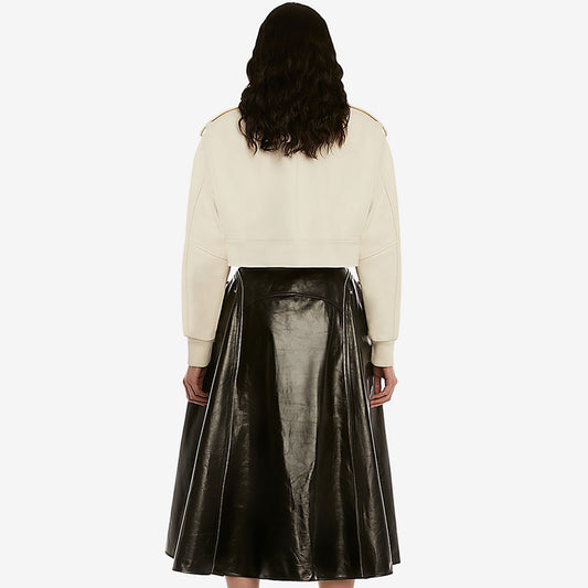New Women's White Lumbskin Shearling Aviator Genuine Leather Biker Jacket