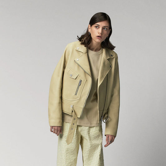 New Women's Yellow Lambskin Motorcycle Aviator Leather Riding Biker Jacket