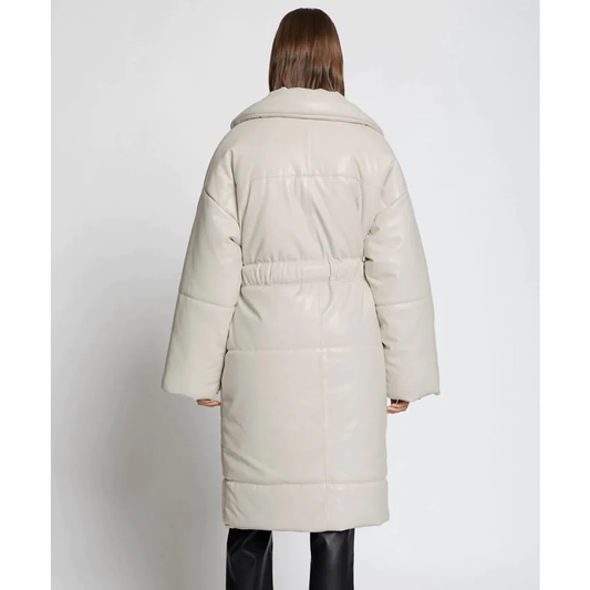 Off White Faux Leather Puffer Trench Coat For Women