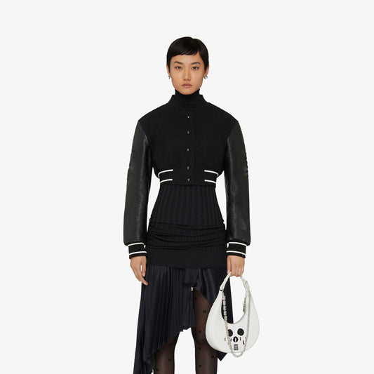 New Black Styled Fashion Sheepskin Shearling Leather Jacket With White Fur For Women