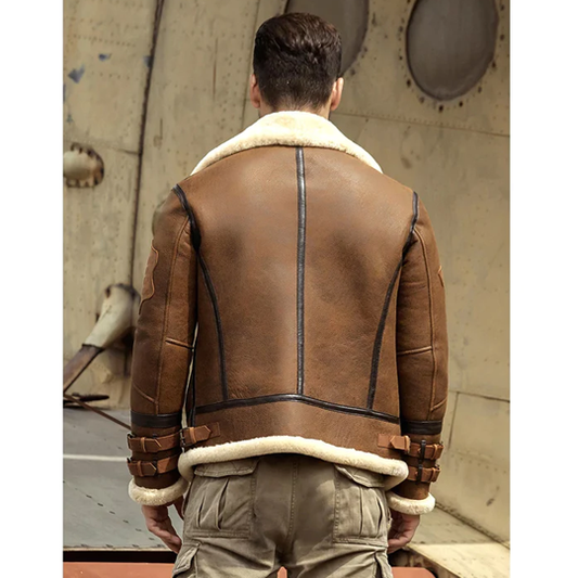 New Brown B3 Airforce Lambskin Shearling Aviator Leather Bomber Jacket