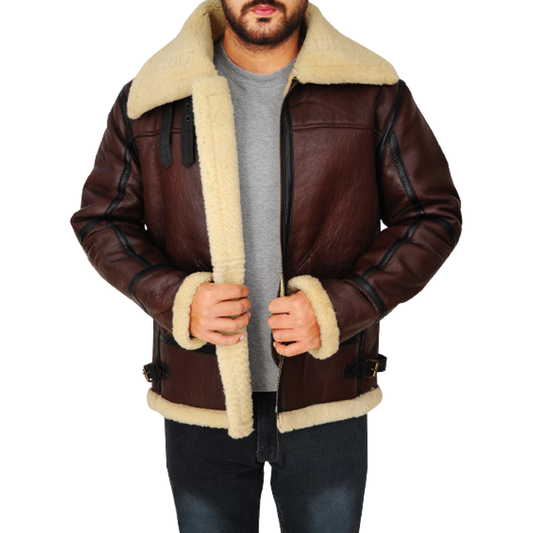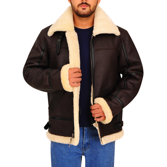 New Men Brown Best B3 Flight Lambskin Shearling Aviator Leather Jacket