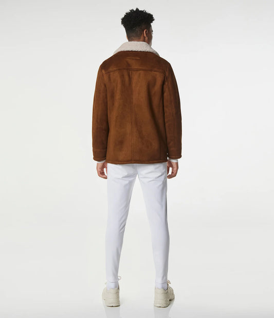 New Men Sheepskin Brown B3 Bomber Suede Genuine Leather Jacket With White Fur