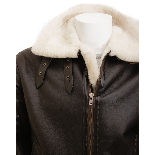 New Brown B3 Fur Flying RAF Aviator Shearling Sheepskin Leather Bomber Jacket For Men