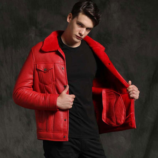 New Red RAF Aviator Sheepskin Fashion B3 Bomber Genuine Leather Jacket For Men'sRegular price $260.00 USDRegular priceUnit price / per$300.00 USDSale price $260.00 USDSale