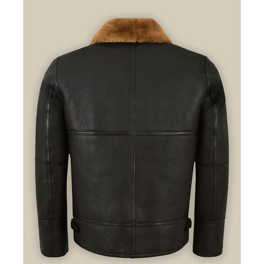 New Men RAF Black Sheepskin Shearling Winter Aviator B3 Bomber Leather Jacket