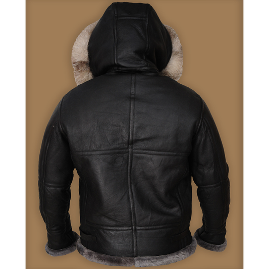New Black Original Sheepskin B3 Bomber Leather Jacket With White Fur