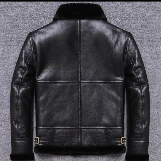 New Men Winter Wool Lamb Fur Leather Jacket Aviator B3 Bomber Jacket