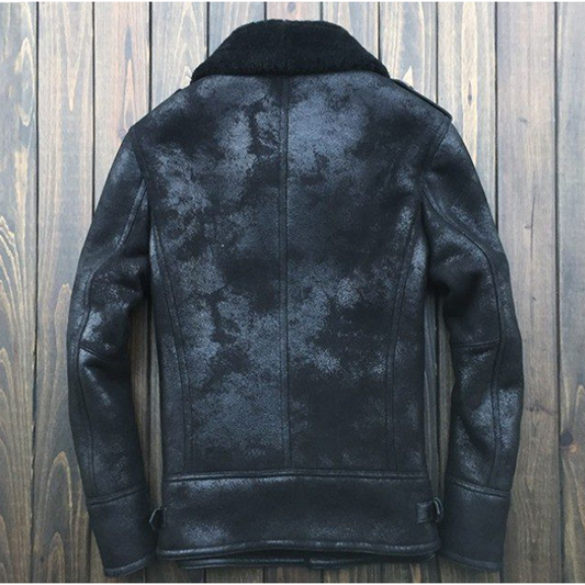 New Men Flying Lather Jacket B3 Bomber Jacket Wool Lamb Fur Aviator Leather Jacket