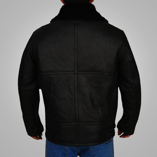 New Black Lambskin Shearling Aviator B3 Bomber Leather Jacket For Men