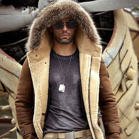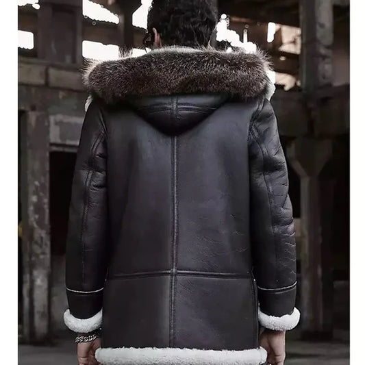 B3 Bomber Shearling jacket Hooded Leather Lambskin coat For Men