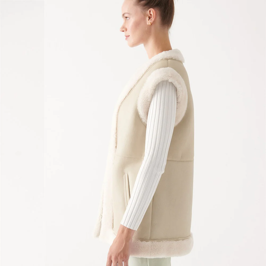 Elevate your wardrobe with our stylish Women’s Shearling Vests. Perfect for layering, these vests combine luxurious warmth with chic design, making them a must-have for any fashion-forward woman. Whether you're heading out for a casual day or dressing up for a night out, our shearling vests offer versatile styling options for any occasion.