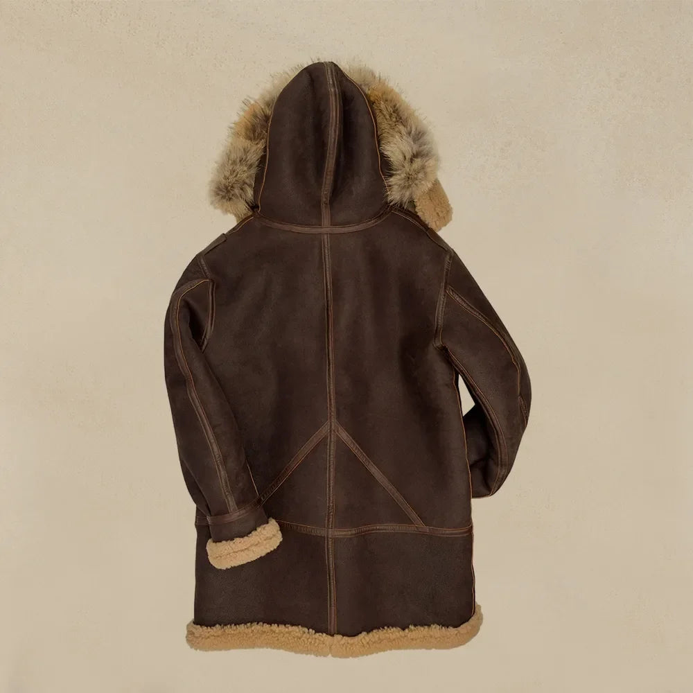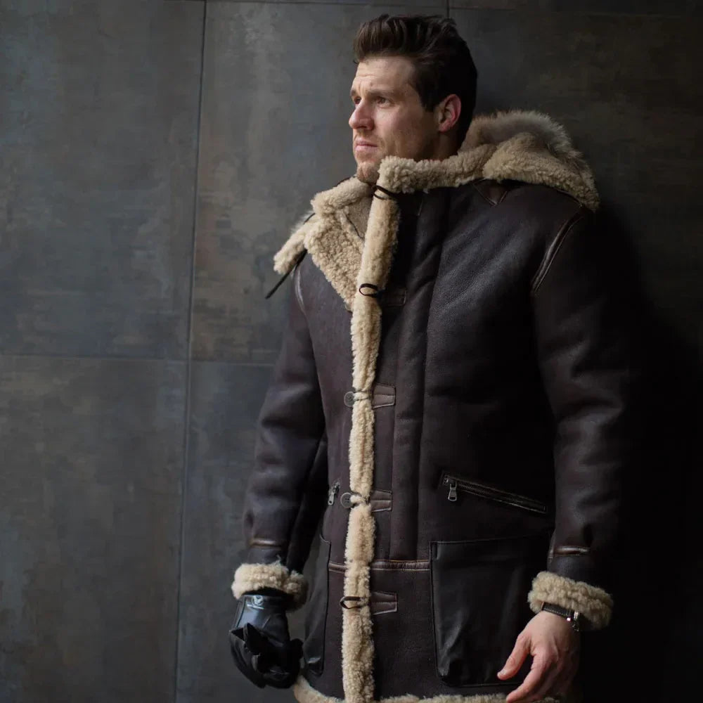 Introducing the Men's New Chocolate Brown Sheepskin Shearling Leather Coat with Fur Hood—a sumptuous blend of warmth and style for the modern urbanite. Meticulously crafted from genuine sheepskin, this coat envelops you in rich chocolate brown hues, marrying durability with timeless elegance. The luxurious fur hood adds a contemporary edge while ensuring unparalleled comfort in chilly weather. Whether navigating city streets or embracing winter adventures, this coat stands as a versatile fashion statement. Elevate your wardrobe with the enduring allure of the New Chocolate Brown Sheepskin Shearling Leather Coat—an icon of urban sophistication that seamlessly combines fashion and function.