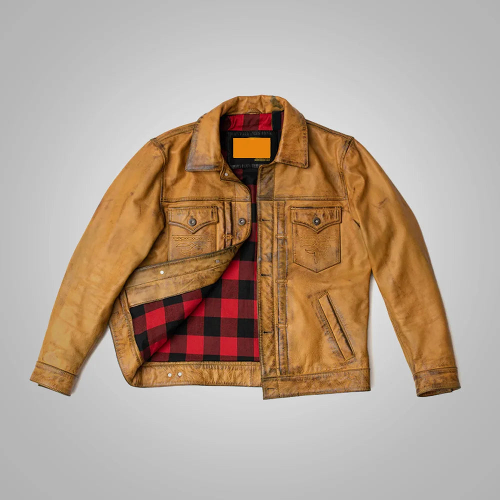 Men's Vintage Lambskin A2 Brown Leather Shearling Jacket.