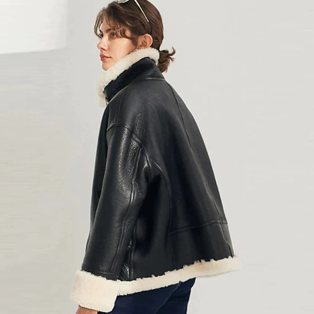 This coat is not just a garment; it's a passage through moments, a dance with the seasons. Picture the delicate rustle of leaves or the soft patter of rain, each droplet anointing the leather with a whispered secret. In this coat, you're not just adorned; you're adorned in the poetry of existence—a narrative of strength and style. The New Lambskin Women's Shearling Leather Lapel Collar Black Leather Coat, where emotion meets attire, and every wear is a page in the tome of your extraordinary journey.