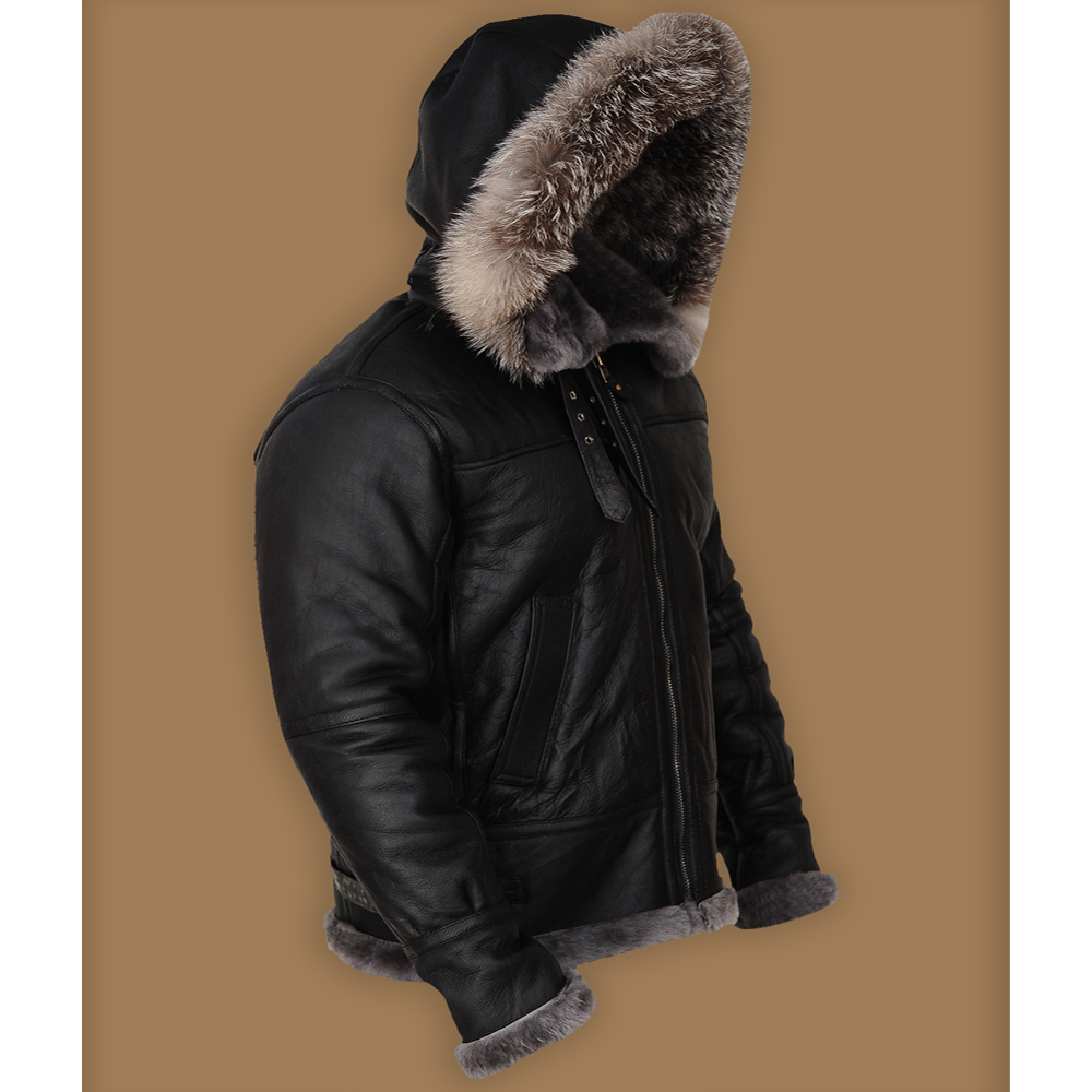 New Men Winter Wool Lamb Fur Leather Jacket Aviator B3 Bomber Jacket