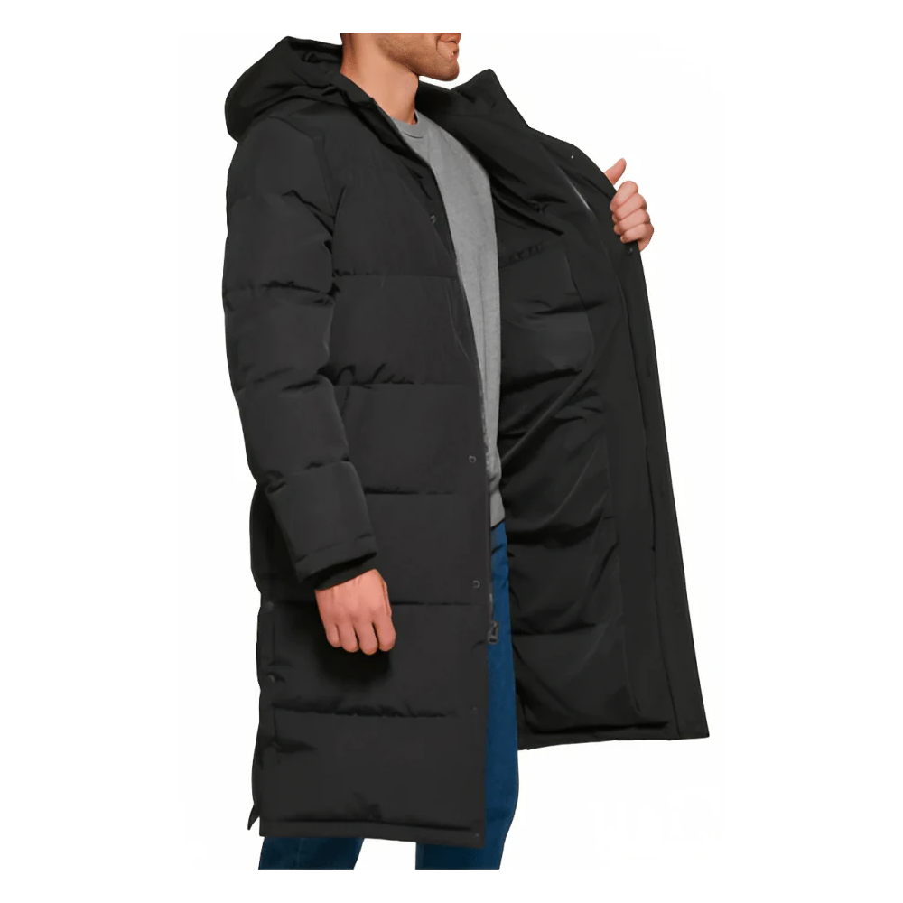 Introducing our expertly designed New Men's Black Trench Puffer Coat, complete with a warm and practical hood. Made with premium materials, this coat provides superior insulation and protection against harsh weather conditions. Stay stylish and comfortable with this must-have addition to your winter wardrobe.