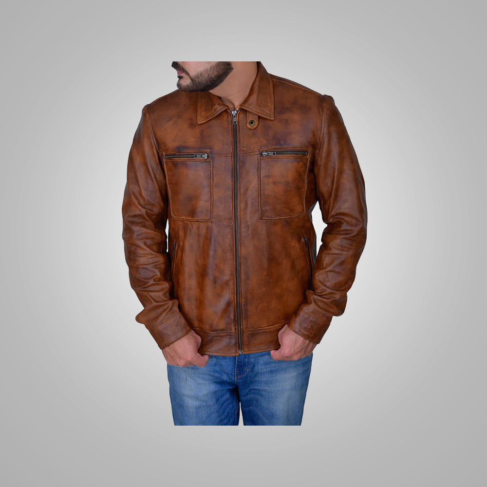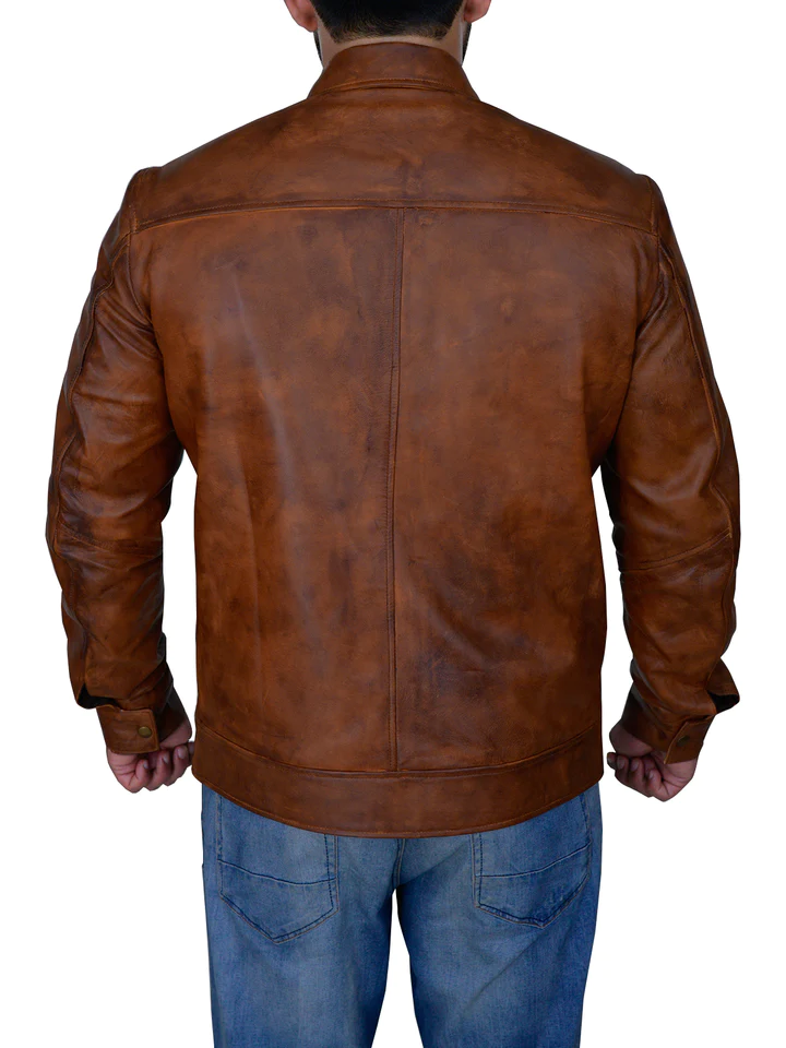 New Mens Brown Distressed Real Lambskin Leather Biker Jacket