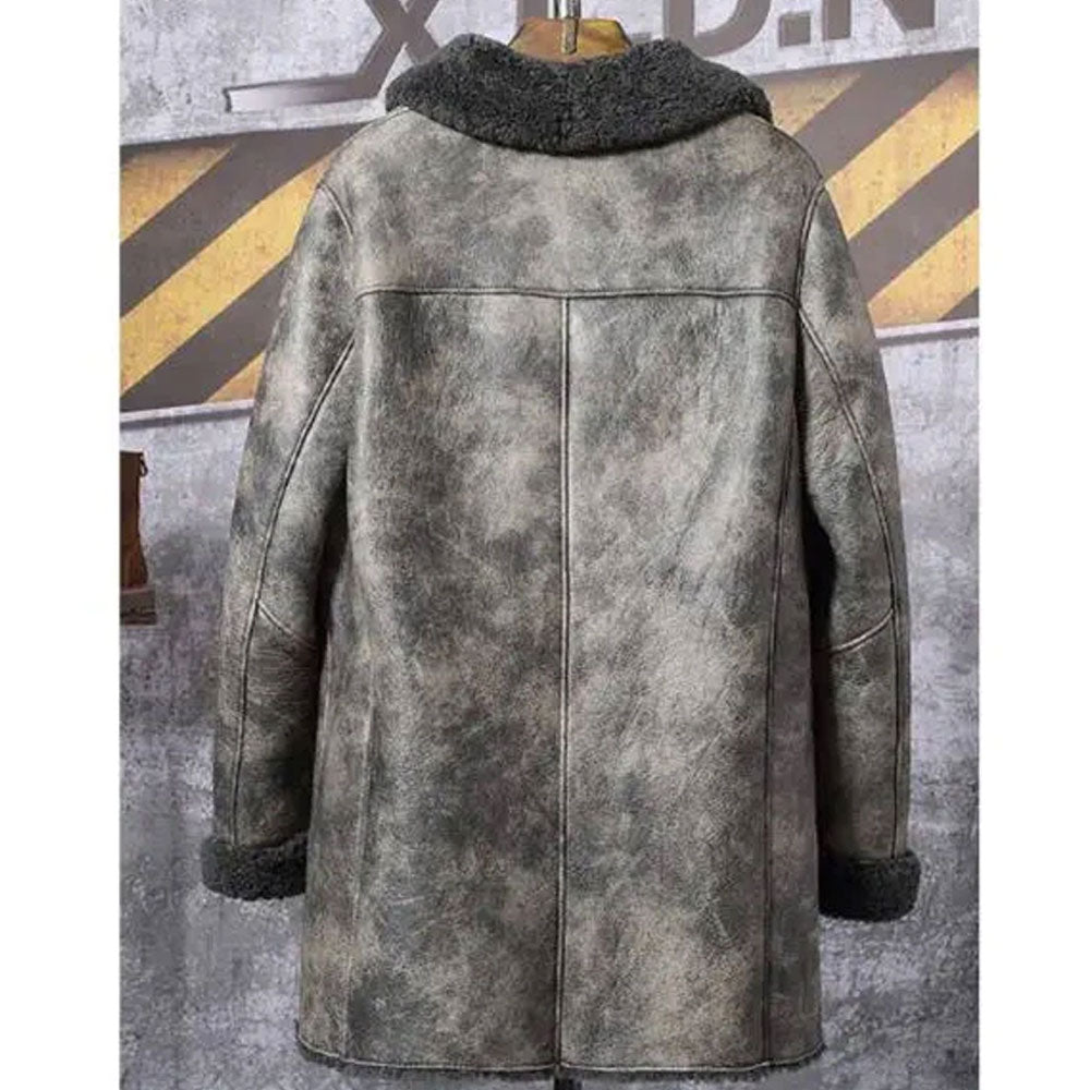 New Men's Hunting Leather Sheepskin Shearling Bomber Trench Coat
