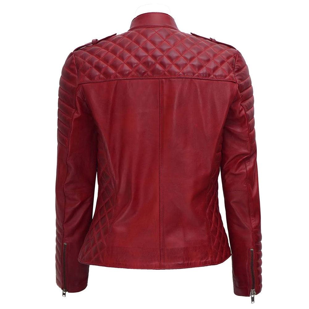 New Red Women's Lambskin Leather Motorcycle Biker Jacket