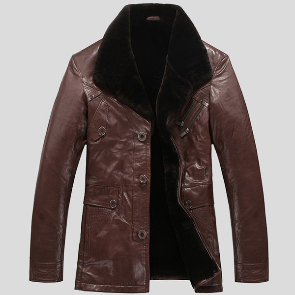 New stylish Men's Warm-lined Sheepskin Shearling Leather Coat