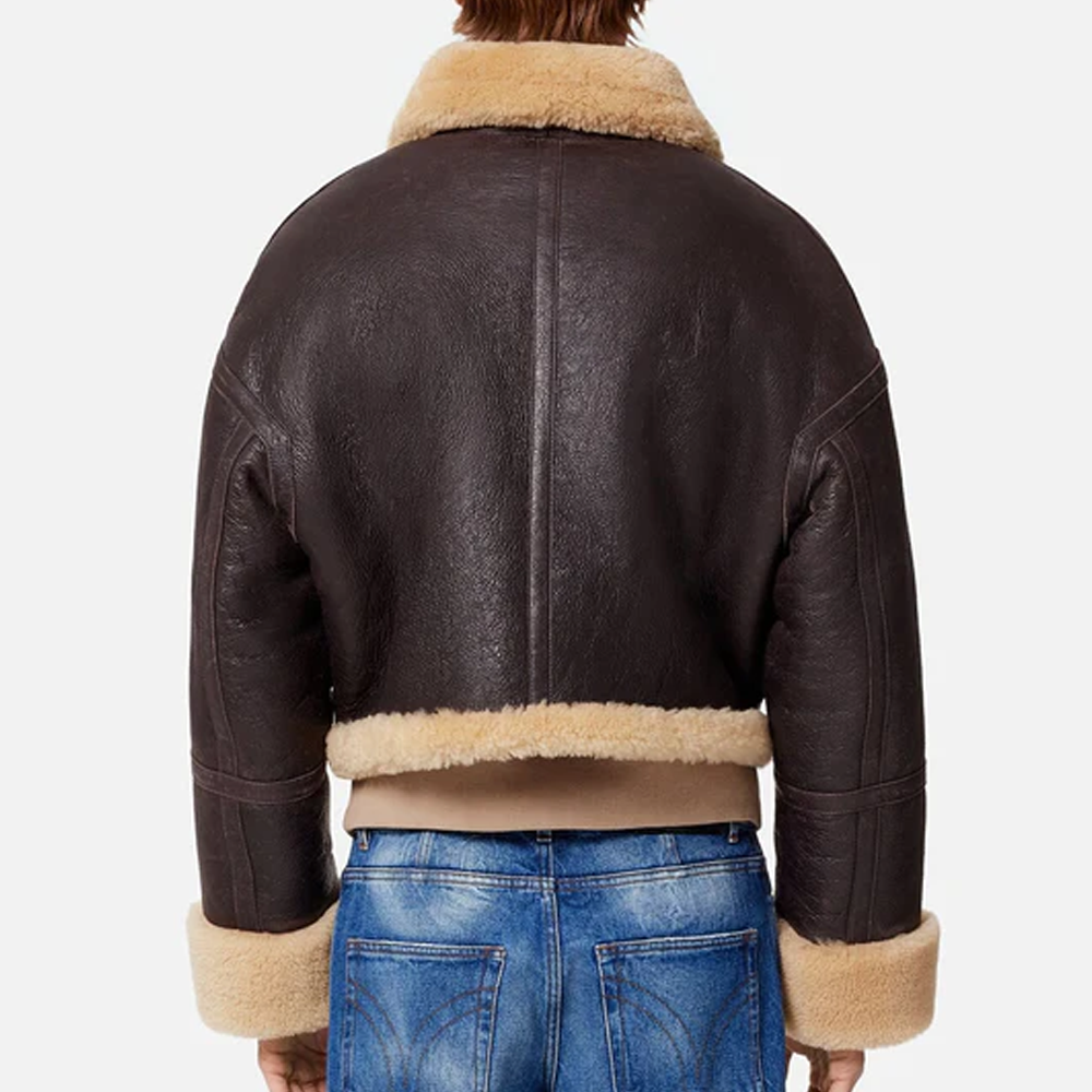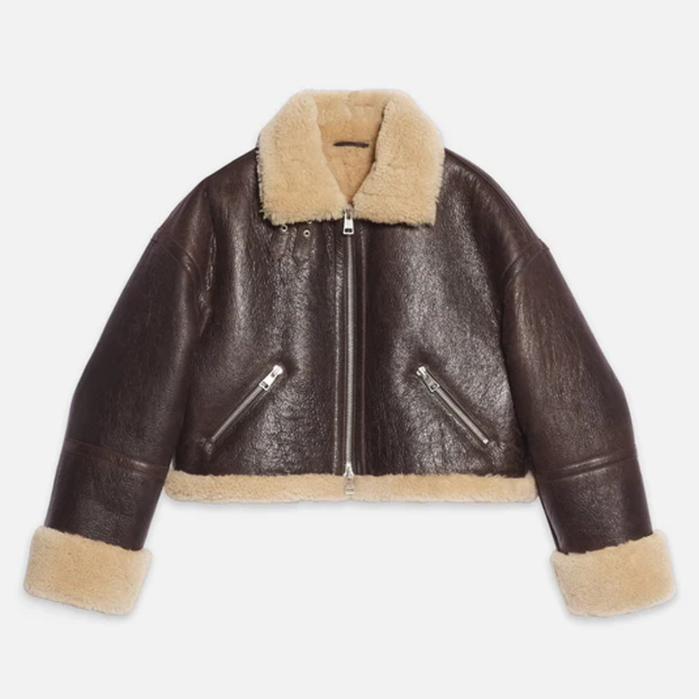 New Women Aviator Sheepskin Emma Brown Motorcycle Leather Biker Jacket
