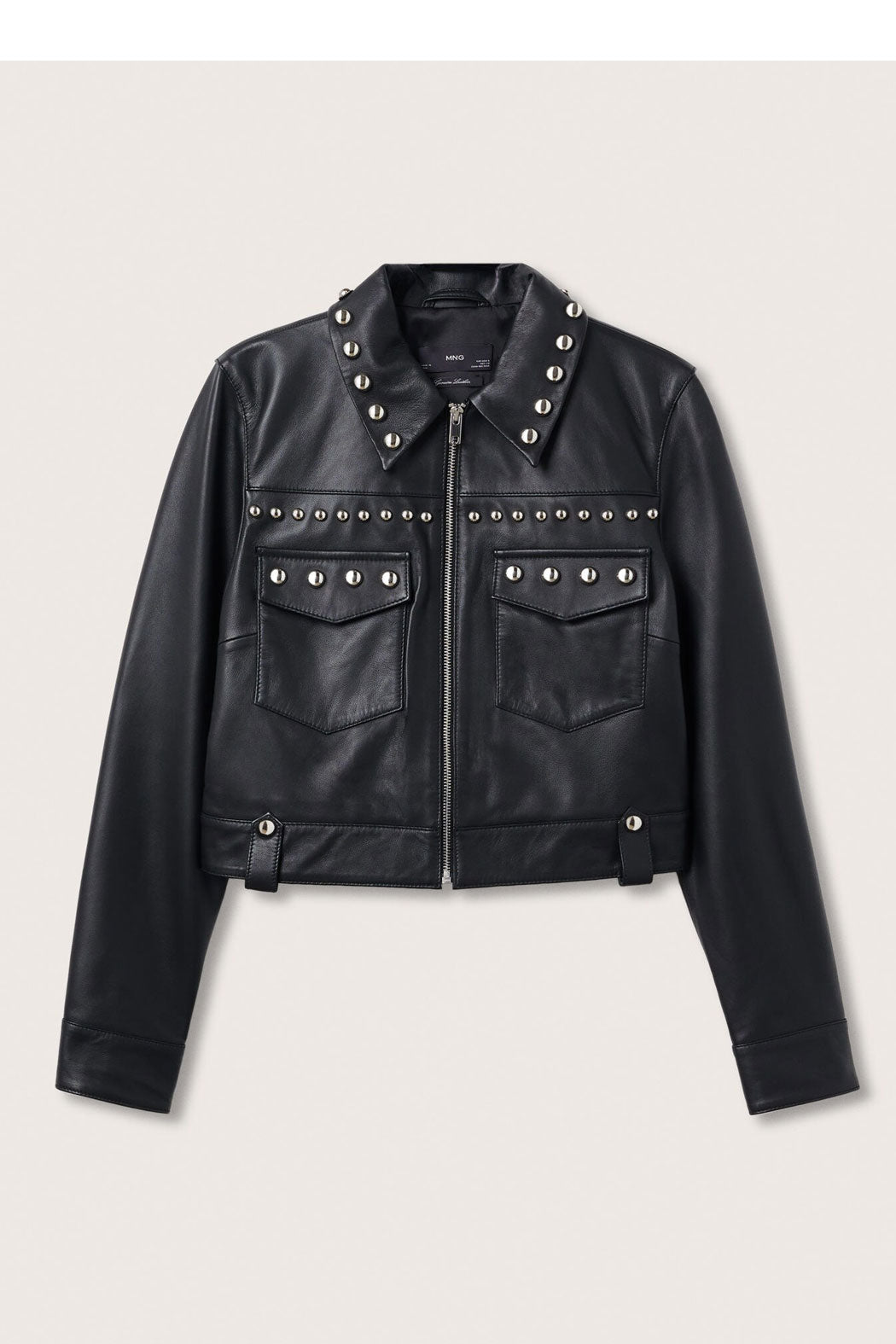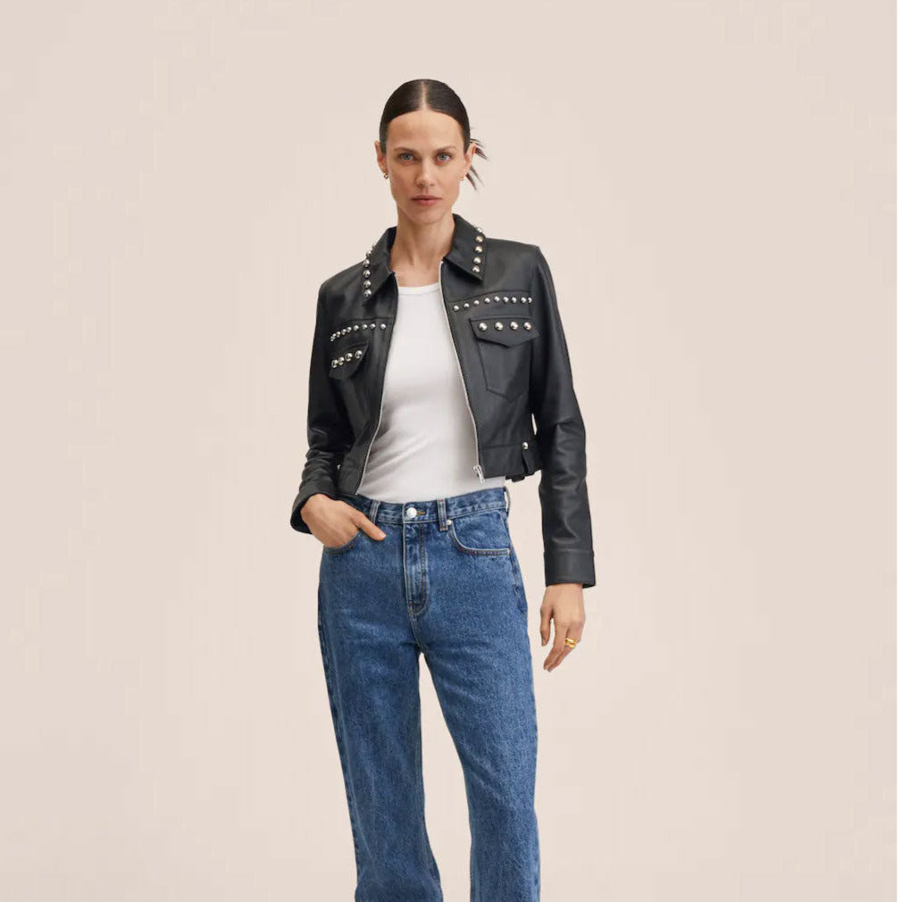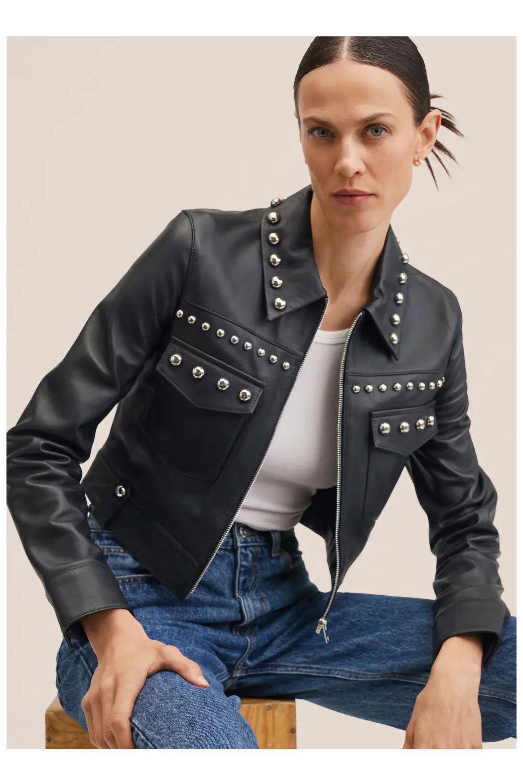 New Women Black Style Silver Spiked Studded Motorcycle Leather Biker Jacket