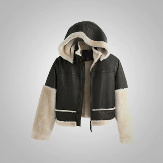 New Sheepskin Shearling Womens Aviator Bomber Leather Jacket With Fur