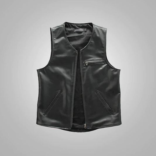New Black Men Sheepskin Genuine Cowboy Leather Vest