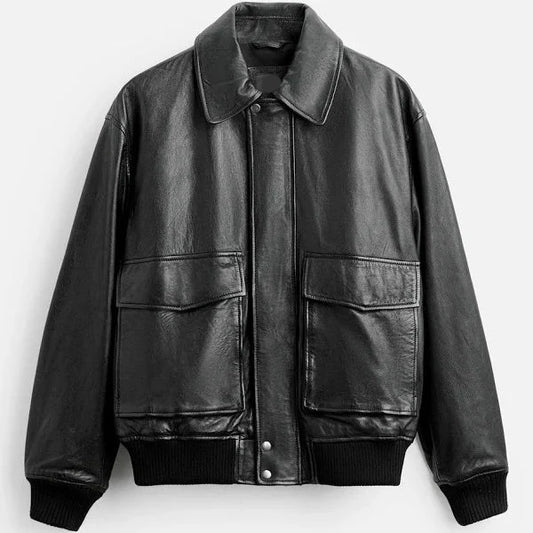 New Men's Flying Sheepskin Aviator Leather Bomber Jacket