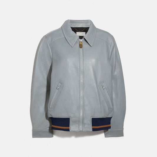 New Gray Sheepskin Shearling Leather Bomber jacket For Women