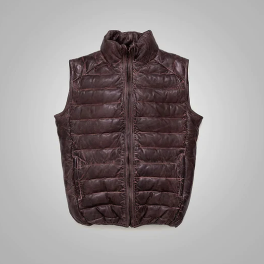 New Sheepskin Dark Brown Bubble Leather Vest For Men
