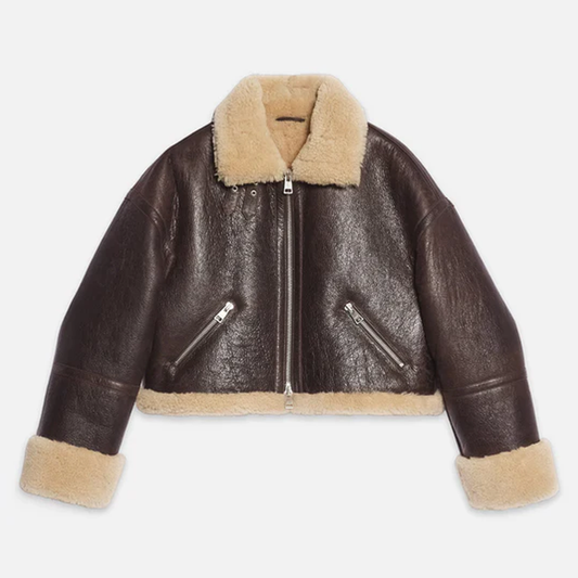 New Sheepskin Shearling Aviator Brown Fashion Leather Jacket For Women